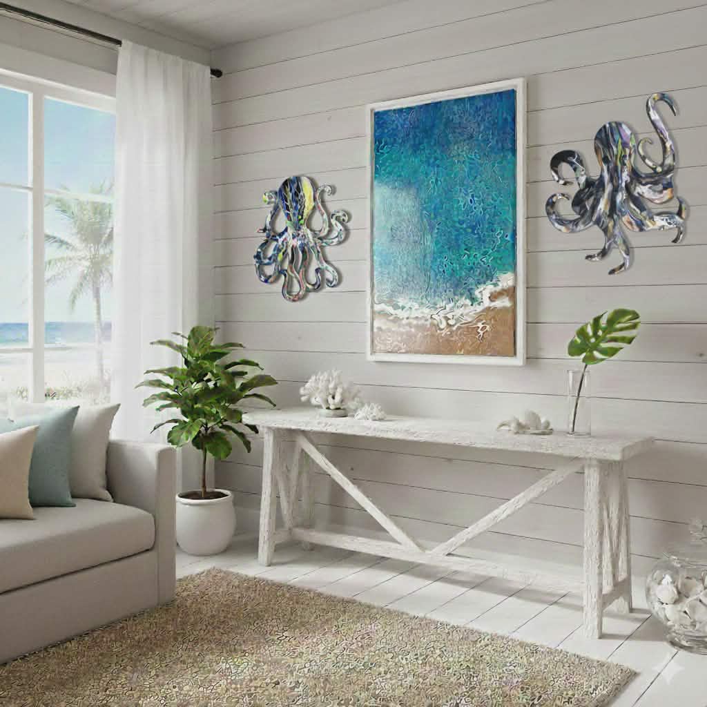CA 1005 Beach Cat Necklace - Hand Painted Ocean Depths Pendant | ArtSea by Dee